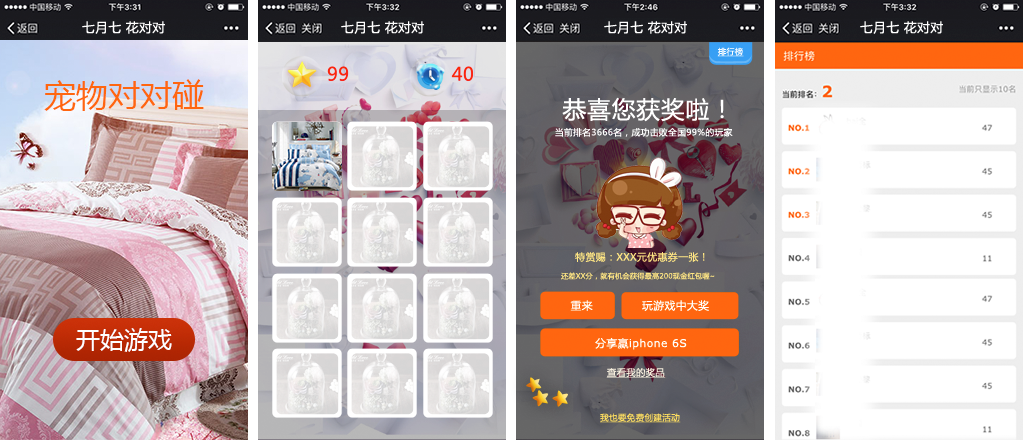 家纺行业营销微信游戏案例之《欢乐儿童节,爱的对对碰!》游戏截图